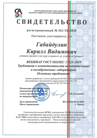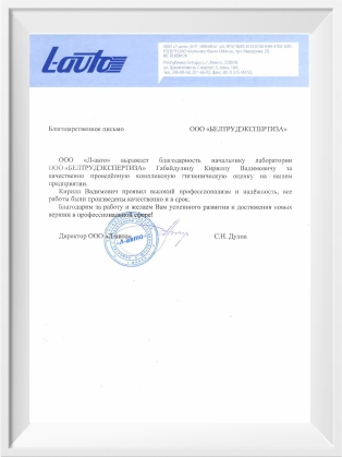 Испытательная лаборатория ООО «БЕЛТРУДЭКСПЕРТИЗА» соответствует критериям Национальной системы аккредитации Республики Беларусь и аккредитована на соответствие требованиям ГОСТ ISO/IEC 17025-2019. Аттестат аккредитации BY/112 1.1826 до 17.12.2026.