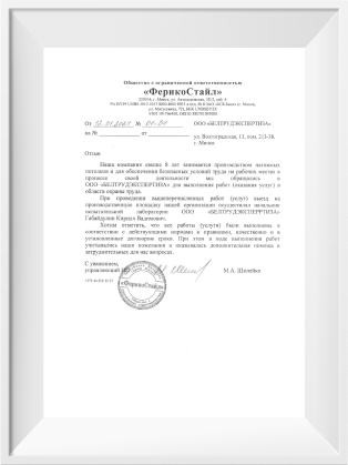 Аттестация рабочих мест: наши специалисты аттестовывали широкий спектр рабочих мест, от швей до атомной станции. Положительные отзывы — подтверждение качества наших услуг.