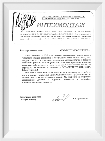 ООО «БЕЛТРУДЭКСПЕРТИЗА» аккредитовано, зарегистрировано в реестре юридических лиц (индивидуальных предпринимателей), аккредитованных на оказание услуг в области охраны труда, и имеет право на проведение аттестации рабочих мест.